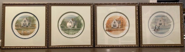 Set of 4 framed P. Buckley Moss seasonal prints: “Spring at Home”, “Summer at Home”, “Autumn at Home”, “Winter at Home”. Starting bid: $200