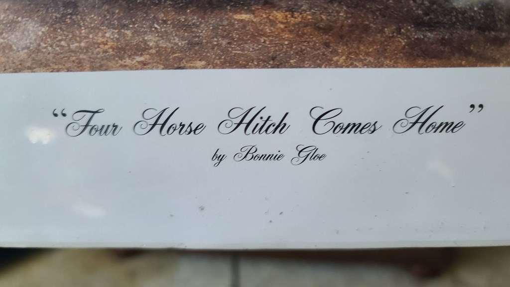 “Four Horse Hitch Comes Home” signed print by Bonnie Glow, #378/1200 The McCrossan Hitch travels the Midwest with their famous four horse hitch. Artist Bonnie Gloe has portrayed the hitch traveling on their way back home to McCrossan’s Boys Ranch in Sioux Falls.
